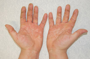 В научните среди има спор относно появата на първия симптом – дали е обривът или сърбежът. Всъщност няма никакво значение. Когато обривът достигне до напреднал стадий, той започва да отделя секрети. Няколко седмици по-късно, след като пациентът упорито се е чесал, областта на кожата загрубява – това се нарича лихенификация.